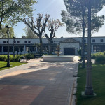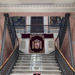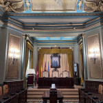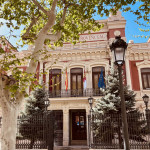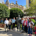 Proseguimos en compañía de Mar Martínez, guía siempre presta a darnos información extra y a mostrarnos nuevas perspectivas de especial interés sobre los lugares visitados. La siguiente parada fue el Palacio de la Diputación Provincial de Albacete, situado en el Paseo de la Libertad; un edificio del siglo XIX de estilo ecléctico, del que destacaría el coqueto salón de plenos. El palacio está rodeado por una verja de hierro forjado en la que se pueden apreciar con claridad los impactos de metralla producidos por los bombardeos a los que Albacete fue sometida durante la guerra civil española.