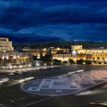 En Erevan, la trimilenaria capital de Armenia, contrastan los monumentales y melancólicos edificios de la época soviética con los palacetes afrancesados, las amplias avenidas y estrechas callejuelas, en medio de un ambiente con cierto glamour. Una mezcla que denota su transición a la modernidad. Uno de los lugares emblemáticos es la decana Plaza de la República, testigo de las manifestaciones populares que cambiaron el rumbo político y social de Armenia. En este entorno se congregan importantes edificios, tallados todos ellos en elegante piedra rosada, que configuran un armónico y simétrico conjunto monumental: el del Gobierno, el del Museo de la Historia, el de la Galería Nacional de Arte, y el lujoso Hotel Marriot, con sus artísticos soportales arqueados. Resulta especialmente placentero sentarse en las cómodas terrazas de este hotel, para refrescarse con una cerveza Kotayk y observar el constante deambular de la gente que transita frente a ellas.
