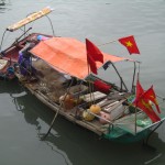Ute Müller, la periodista y experta en Vietnam con la que viajo, me sugiere descubrir al día siguiente Cat Ba, una de las islas de la bahía donde existen varios poblados que parecen desconectados del mundo, además de un exuberante Parque Nacional. Embarcamos en un Ferry y en medio de la travesía hacia Cat Ba divisamos uno de esos pintorescos pueblitos flotantes que viven sobre el mar y no dejas de preguntarte cómo será la vida rodeado siempre de agua. Este tipo de pueblos flotantes es una atracción turística que refleja el pasado y el presente de unas comunidades que viven de la pesca desde que hace muchos años se ubicaran en la bahía de Ha Long.