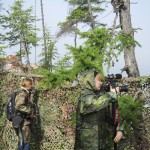 Tras casi siete horas de navegación avistamos en el horizonte el archipiélago de las tres islas Ushkany. Los nombres de las islas son harto elocuentes: “Grande”, “Redonda” y “Larga y delgada”. Tal cual son. En esta última desembarcamos y se nos advierte de la necesidad de mantenernos silenciosos. Los animales que vamos a descubrir tienen un acusado sentido del oído y repudian los colores fuertes. De ahí que debamos proveernos obligatoriamente de los uniformes de camuflaje que nos facilitan los militares que custodian el parque natural de esta isla, un área altamente protegida.