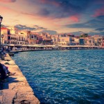 El oeste de Creta es la zona más verde y montañosa de la isla. Las majestuosas Montañas Blancas o Lefka Ori dominan el paisaje y se elevan a casi 2500m. Un poco más allá, en la punta occidental, está Chania, un conjunto perfecto de encanto y cultura donde disfrutar de sus coloridas calles del casco antiguo, su puerto veneciano con un faro egipcio, la mezquita de los Jenízaros, etc., y en sus proximidades algunas de las mejores playas de Creta, entre las que se encuentra la famosa Elafonisi, la más fotografiada de Creta, en medio del parque Natural de Lafonisi; más que una playa, Elafonisi es una pequeña isla en medio del mar que cuando la marea está baja se puede cruzar caminando e incluso plantar la sombrilla, con cuidado de que no se la lleva la marea al subir. Tiene muy poca profundidad por lo que es ideal para ir con niños, disfrutar del mar a cada lado del camino es una maravilla. Su arena tiene una tonalidad rosada debido al coral. No le queda lejos en popularidad y belleza Balos, que es playa y también laguna de cálidas aguas junto al mar de aguas turquesas. Hay quiénes consideran Balos la mejor playa del mar Mediterráneo. En toda la zona se descubren pequeños y pintorescos pueblos, algunos de ellos solo accesibles por mar.