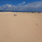 Y para empezar a descubrirlas nada mejor que hacerlo desde la Playa de Sotavento y Playa Barca casi al sur de la isla en pleno parque natural de Jandía, un arenal blanco y fino, en ocasiones con 300 metros de fondo y con más de 30 kilómetros de litoral. Algo que hace único a esta playa es la laguna que sube y baja al ritmo de las mareas y que llega a ocupar hasta cuatro kilómetros de largo. El espectáculo es grandioso, la vegetación de chaparros y balancones y las pequeñas dunas al borde del mar aparecen y desaparecen a medida que el agua de la laguna sube o baja por la influencia de la luna, mientras decenas de pececillos se mueven con rapidez escapando de los pequeños riachuelos que forma el agua en su camino de vuelta al mar. Ese mar turquesa, en realidad océano, sorprendentemente cálido en el que, con suerte, pueden verse tortugas y delfines, mientras miles de aves lo sobrevuelan.
