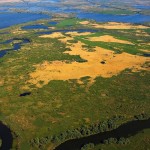 Al nacer el día emprendemos la marcha hacia el mar, dejándonos llevar por la corriente y nos tropezaremos con islas flotantes, atravesaremos caóticos canales donde la vegetación se los va comiendo y vemos como los árboles hunden sus raíces en el agua para beber la sabia de la vida. Los pelícanos no se intimidan a nuestro paso y posan elegantemente con la cabeza bien alta ante nuestras silenciosas cámaras. Nos acompañan decenas de aves que nos indican el camino.