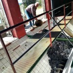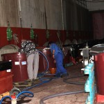 Según van llegando los productores, vierten la uva a unas torvas para que caiga a un tornillo sin fin que la mandará a la sala de máquinas, donde una trituradora- despalilladora la estruja y la deja sin esqueleto para que pueda salir el mosto, pero sin partes vegetales. Después, una bomba coge ese mosto y lo manda a los depósitos, con capacidad para 15 o 16 mil litros, donde vaya a fermentar, y en los que el tiempo de fermentación dependerá de la temperatura y de la cantidad de azúcar que contenga la uva, entre otras variables. Es decir, que a veces puede fermentar mes y medio, o incluso más, y otras basta con sólo tres días.