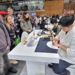 Así, con K, se presenta Corea en Fitur con un stand espectacular de unos 200 ?, que ha sido premiado como uno de los mejores de la feria, decorado bajo el concepto de “El color puro de la porcelana baekja de Joseon y las curvas elegantes del traje hanbok”. Es unos de los que más experiencias permite a los visitantes con actividades, juegos y espectáculos de su cultura tradicional como talleres de Najeonchilgi, el arte tradicional del lacado coreano, o exhibiciones de Taekwondo. Además, como signo de la convivencia entre la tradición y la modernidad en el país asiático, un robot se encargó de dirigir al público en el stand. Pero sin duda lo que más llamaba la atención es el arte de la caligrafía de alfabeto coreano hangeul, que se escribía sobre abanicos. Una paciente cola de casi cien personas esperaba su turno para llevarse un abanico a casa con su nombre coreano.