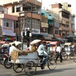 Otro aspecto que sorprende al viajero no más llegar a cualquier ciudad india es algo mucho más prosaico que lo anterior: el tráfico rodado es el paradigma del caos. Allí siempre es hora punta. Un espectáculo si lo ves desde fuera, y algo desquiciante si lo vives desde dentro: automóviles, tuk-tuk rickshaws  (el más económico taxi de tres ruedas) motocicletas, peatones, vendedores ambulantes, mendigos, elefantes, camellos y vacas transitan entrecruzándose y sorteándose una y otra vez, al ritmo de un loco desconcierto de bocinas. Las vacas, sabedoras de su condición sagrada, ni se inmutan por la cercanía de los vehículos a motor (si se te acerca alguna, apártala con los mayores miramientos). Y uno, si no se salta los semáforos, puede demorarse un año en cruzar las avenidas. Caminar por las vías públicas tiene aparentemente sus riesgos: “En la India no se conduce, se esquiva”, reza un dicho popular. Hay libertad total para hacer locuras. Pero apenas hay percances.