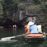 La principal diferencia de este recorrido con los que se hacen en la bahía de Halong es la sensación de intimidad, porque aunque haya decenas de barcas que siguen el mismo curso, uno siente la soledad, se percibe claramente el suave batir de los remos, el chapoteo del agua, el arrullo del viento… Todo parece que está ahí para que uno los disfrute, cada peñasco, cada extensión de arrozales, cada pájaro que nos sobrevuela, cada aleteo de los patos, cada Martín pescador que salta al paso de la barca. El placentero viaje solo se ve interrumpido, a veces, por algún vendedor ambulante que propone una fresca bebida… para el remero, aunque la paga el pasajero. Casi nunca la consumen y con frecuencia te la ofrecen a mitad de precio cuando avanza el recorrido.