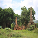 Navegando por el lago en lancha tradicional llegamos al conjunto de pagodas Indein. Es sábado. Mujeres, hombres y niños se afanan en embellecer su entorno quitando la maleza que ha mantenido durante años escondidos los templos.