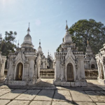 Construcción que contrasta con la Pagoda Kuthodaw, una de las más bonitas de Myanmar. La estupa principal está rodeada de 729 pagodas secundarias de color blanco, en cuyo interior se conservan unas estelas de alabastro escritas en pali, considerado en su conjunto uno de los mayores libros budistas del mundo.