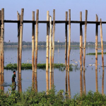 En Amarapura, sobre el lago Taungthaman, mujeres, hombres, niños, parejas y turistas pasean alegremente por los 1,2 kilómetros del mítico Puente U Bein, el puente de teca más antiguo y largo del mundo. Recorrerlo con la mirada desde uno de los barcos que se ordenan en fila frente al puente para observar la puesta de sol es la opción más solicitada por los turistas.
