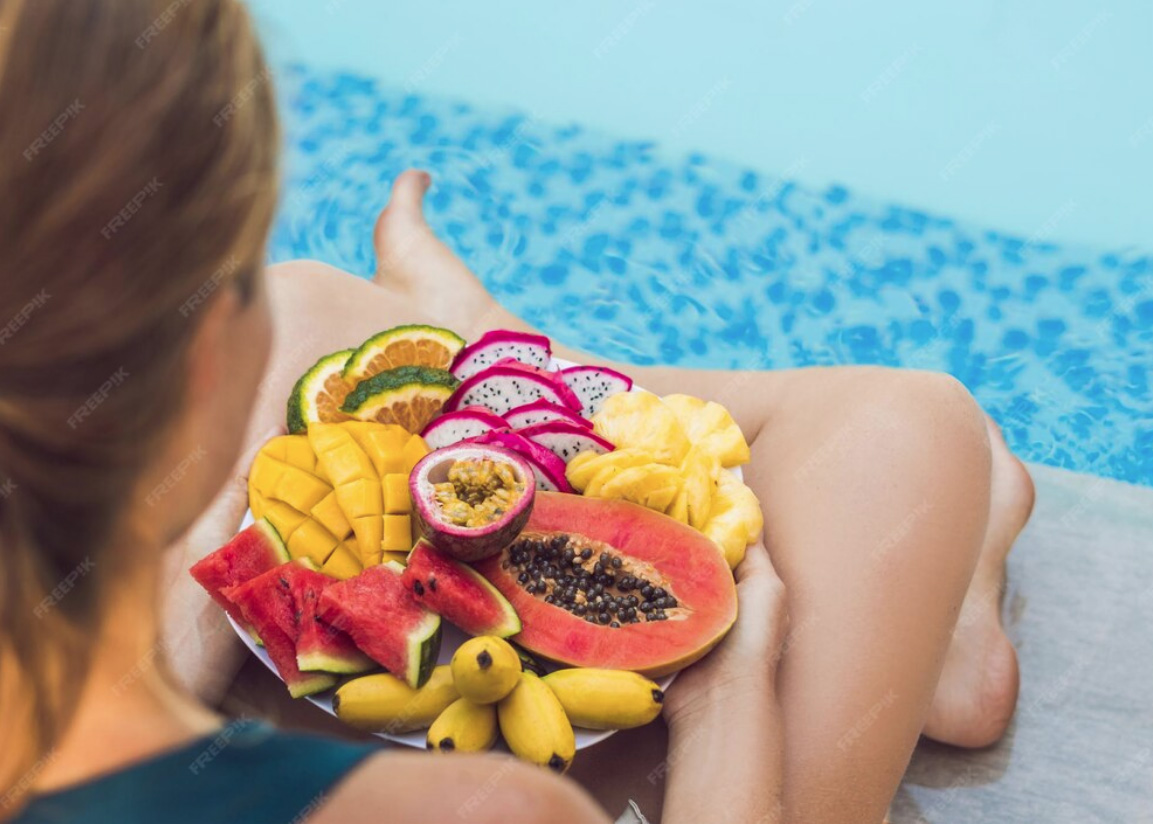 2. Reintroducción Gradual (el «primer bocado»). Evita los carbohidratos refinados (pan blanco, pastas, postres azucarados). El cuerpo está muy sensible a la glucosa tras el ayuno y el calor. La opción ideal es una ración de grasas saludables y proteínas: unos frutos secos crudos, medio aguacate o un huevo escalfado. De esta forma las grasas y proteínas mantienen la saciedad y evitan el «letargo» post-comida, permitiéndote volver a las piscinas por la tarde con energía.