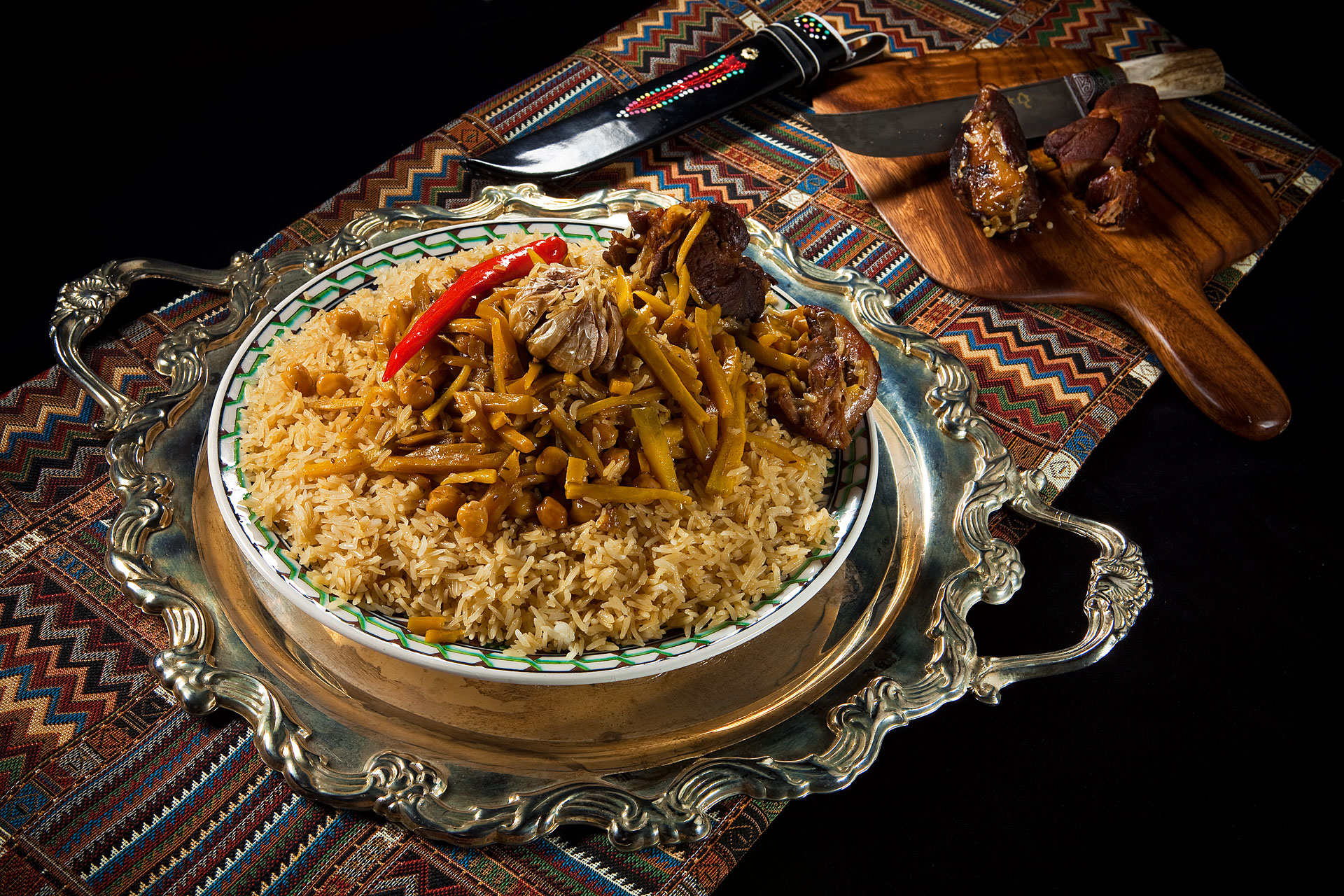 Samarcanda no es solo mirar monumentos. Es sentarse a comer un buen plov —el arroz típico de Uzbekistán— acompañado del pan redondo non, tan denso y aromático que uno entiende por qué es sagrado para los locales. También hay sopas de fideos (lagman) y empanadillas (manti) que reflejan la mezcla de culturas que siempre pasó por estas tierras.