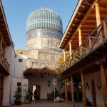 La última visita en Samarcanda (bueno, la penúltima porque en esta ciudad siempre queda alguna sorpresa) debería haber sido la primera, aunque la tentación de Registán hace que se invierta el recorrido. Se trata de Gur-e Amir, el mausoleo del conquistador Tamerlán, también conocido como Timur, que en el fondo y con la ayuda de sus descendientes fue quien dio máximo esplendor a la ciudad. Ocupa un lugar importante en la historia de la arquitectura turco-persa como precursor y modelo de las grandes tumbas de la arquitectura mogol posteriores, incluida la Tumba de Humayun en Delhi y el Taj Mahal en Agra, construido por los descendientes persas de Timur, la dinastía gobernante de Mughal del norte de la India.