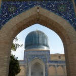 Amir Timur quería ser enterrado en una simple tumba en su ciudad natal de Shakhrisabz, pero sus familiares y asesores tenían planes más grandiosos. El hermoso portal y la cúpula azul estriada marca el lugar de descanso final de Tamerlán, junto con dos hijos y dos nietos (incluido Ulugbek el creador de la primera madraza de Registán). Es un edificio sorprendentemente modesto, aunque los azulejos y la cúpula son particularmente hermosos. «Si el cielo desaparece, la cúpula lo reemplazará», entusiasmó un poeta al vislumbrar la cúpula sin igual sobre el mausoleo de Tamerlán.
