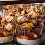 Para la cena de la segunda noche, directos de las rías gallegas, fresquísimos pescados en caldeirada o “a la gallega”, es decir, con ajada, y mariscos al vapor o a la parrilla, o tierna carne a la brasa: chuletón de ternera gallega o churrasco de “porco celta” con chorizos. Pero también podemos decidirnos por una opción más informal: una ruta de tapas, para degustar tanto las de cortesía de toda la vida (“cocodrilos” –carne de inofensivo cerdo con patatas fritas–, orejas, patatas…), montaditos y pintxos, como las de nueva creación, la llamada cocina en miniatura.