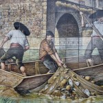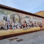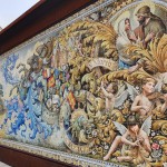 Y, en efecto, al pasear hoy por Talavera de la Reina, la cerámica sale al encuentro. Por supuesto, se puede descubrir en el interior de varias iglesias, en el hall de algún hotel, en las fachadas de las tiendas (hay uno precioso en una céntrica churrería) y en muchos otros lugares. Pero lo más original son los murales de grandes dimensiones al aire libre, muy próximos entre sí y todos cerca de la ribera del Tajo. Hay una ruta organizada por siete de ellos. Entre los más espectaculares y de trazado tradicional, está el de la Historia de las Mondas, una fiesta tradicional que tiene lugar en abril, que se encuentra junto a la Iglesia de Santa Catalina. Realizado por Antonio G. Cerro, tardó más de año y medio en su creación y elaboración. Nada menos que 1515 azulejos cubren una superficie de más de 20 metros de largo por 3 de alto. Muy cerca está el de Pescadores del Tajo, frente al Puente Romano y al lado del Museo Etnográfico, del mismo autor y de dimensiones parecidas. Como curiosidad, simulando olas del río y redes, se encuentran los nombres del millar largo de ciudadanos que abonaron 15 euros para apoyar el trabajo, que era el coste de cada azulejo. De estilo más moderno y de menor tamaño, llaman la atención el Mural de los Deportes de Nicolás Varas y el Mural Libertad, otra vez del polifacético Antonio Cerro.