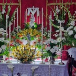 Y es también la cruz –las cruces porque son más de 300 las que se exhiben en el municipio– otra de las rivalidades que afectan a todo el pueblo, a todas sus calles. Capillas, portales, ventanas, escaparates, interiores de viviendas, patios, incluso simples paredes se adornan con cruces y fuera de la urbe, también en riscos, peñas en el mar, caminos y quebradas en el monte. Cientos de cruces y millones de flores formando enrames deslumbrantes o modestos que forman un catálogo de las más bellas y olorosas variedades. Orquídeas, anturios, rosas gigantes, tulipanes, claveles, margaritas, calas y, naturalmente, la Strelitzia reginae, más conocida como ave del paraíso, la más típica de Canarias.