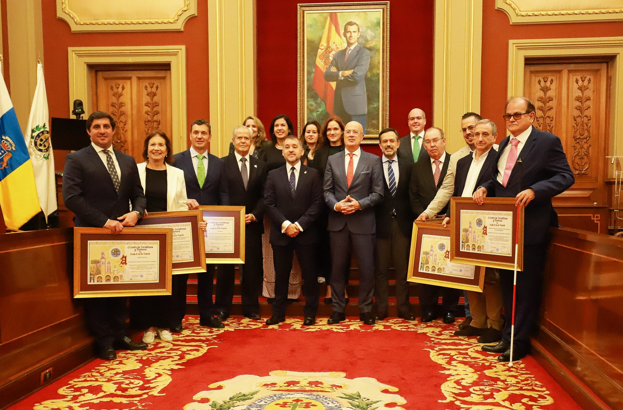 Bermúdez felicitó «en nombre propio y en el de todos los chicharreros a los distinguidos esta noche, que pasan a engrosar una nómina de ilustres personas y entidades que se han significado por su contribución al desarrollo turístico de Canarias o por su aguda sensibilidad social».