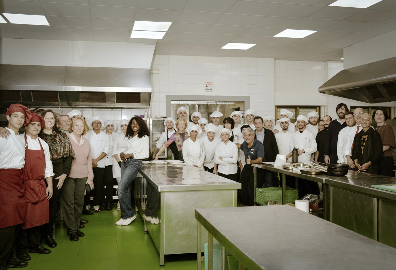 Miembros de Fijet España con alumnos de la Escuela en sus cocinas.