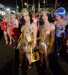 En cada edición se cruzan las generaciones como pocas fiestas permiten: los veteranos que llevan el recuerdo de los primeros años tatuado en la memoria y en los pies, y los recién llegados que se suben por primera vez a esos ocho centímetros de osadía con la mezcla exacta de pánico y euforia que solo regala el debut. Y junto a ellos, siempre, los viajeros de otros países que descubren atónitos que el Carnaval más internacional de España no ha sacrificado ni un gramo de su alma popular en el altar de la espectacularidad.