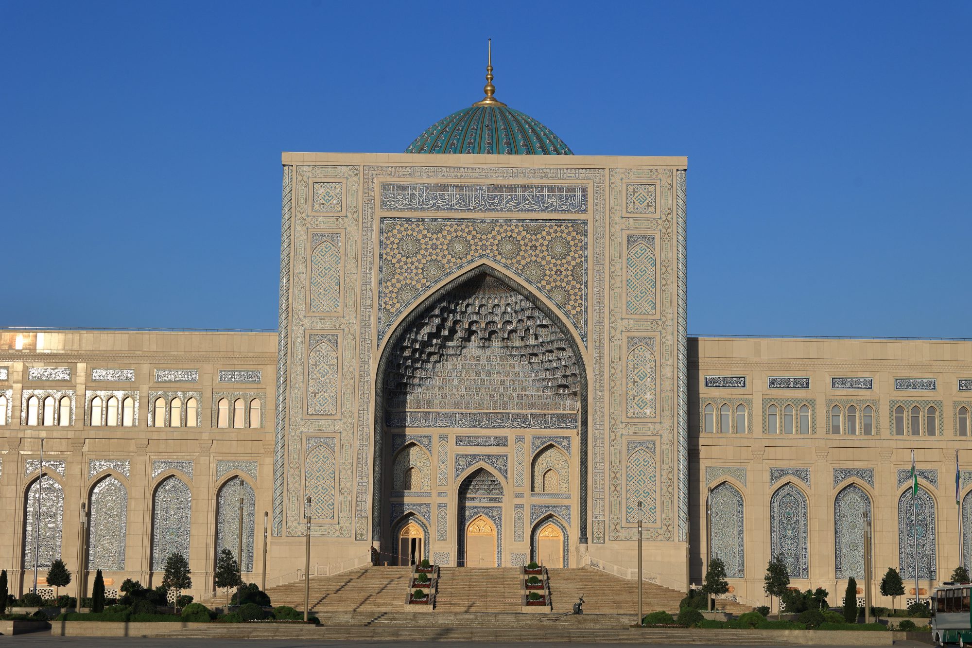 Hoy, esta visión se ha materializado en un majestuoso complejo que abarca diez hectáreas en el centro histórico de Tashkent. Su cúpula azul de 65 metros y sus cuatro puertas doradas simbolizan la unidad de todas las regiones de Uzbekistán. En cada línea del edificio se integran armoniosamente las tradiciones arquitectónicas de la época timúrida con soluciones tecnológicas modernas.