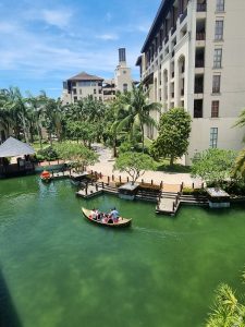 Otro paraíso que también busca la excelencia es el islote Wuzhizhou, frente a la bahía de Haitang, que es considerado una joya en la zona. Es una isla verde y no solo está prohibido fumar, sino que se presta atención a la recogida selectiva de basura. En estas dos islas llaman la atención gigantescas pasarelas en madera suspendidas sobre los acantilados y calas que se pueden recorrer en pequeños coches eléctricos abiertos en un paseo maravilloso con vistas inolvidables. Entre lo mejor de la isla destaca, sin duda, el espectacular hotel Fairmont Sanya Haitang Bay, con vistas a la playa y el infinito paisaje marino que se extiende a lo lejos. Combina la hospitalidad internacional con rituales locales para ofrecer un lujo innovador, comidas y bebidas ingeniosas, además de ofertas creativas de ocio y bienestar para vivir momentos inolvidables. Con 523 habitaciones y suites, es prácticamente un pueblo en sí mismo, con un canal de agua salada de un kilómetro de longitud que serpentea a través de la propiedad dándole un cierto aire a Venecia, es el primer canal de agua de mar del mundo que corre dentro de un hotel, que permite a los huéspedes tomar un paseo en su bote dragón para llegar a las habitaciones y otras instalaciones mientras disfrutan del paisaje siempre cambiante y los verdes paisajes. Las habitaciones y suites son lujosas, con amplio espacio para relajarse y un estilo de diseño interior que hace un uso generoso de la madera y la piedra típicas de la región.