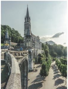 Al día siguiente, tras el desa- yuno, pudimos hacer una larga visita a los Santuarios, muy bien dirigida por un guía del servicio correspondiente, además de conocer las piscinas, oír Misa en español en la Capilla de San José y contemplar, por encima de la larga explanada, sin llegar a subir a la colina en la que se asienta, la Fortaleza, un castillo del que los habitantes de Lourdes se jactan de que no pudo ser conquistada ni por el propio Carlomagno. Mi grupo, por falta de tiempo, ni lo pretendió.